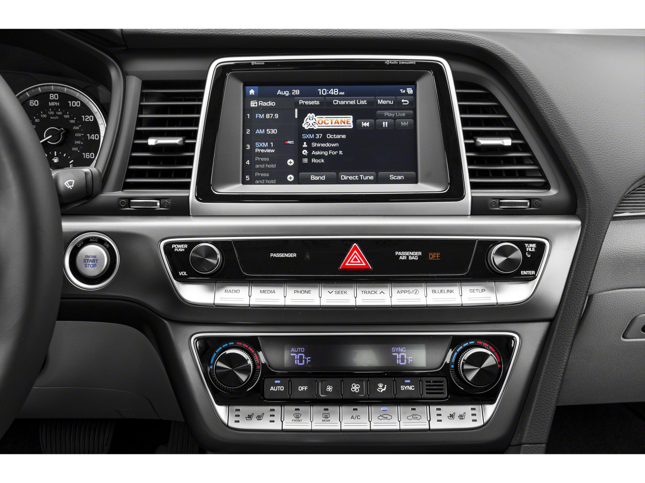 - Radio: AM/FM/HD/SiriusXM/MP3 Display Audio -inc: 7" color touchscreen, HD Radio technology w/multicasting, Apple CarPlay, Android Auto, integrated Bluetooth® w/phonebook transfer, 6 speakers (2 front-door-mounted, 2 tweeters and 2 rear) and iPod/USB and auxiliary input jacks, Blue Link Telematics Gen 2, Blue Link Connected Care Package (3-year complimentary trial) and Blue Link Remote Package (3-year complimentary trial)