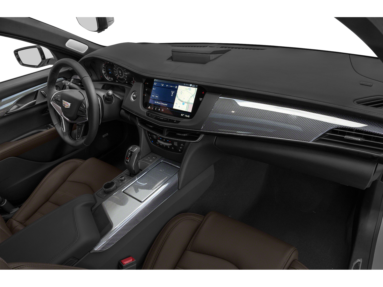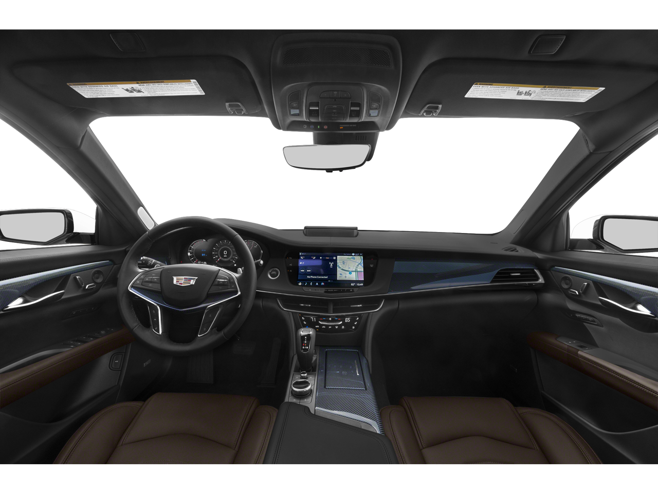 The interior of the CT6-V envelops occupants in premium leather seating carbon fiber accents heated and ventilated front seats heated rear seats a heated steering wheel four-zone climate control and a panoramic sunroof. The cabin delivers flagship-level comfort while maintaining driver engagement.