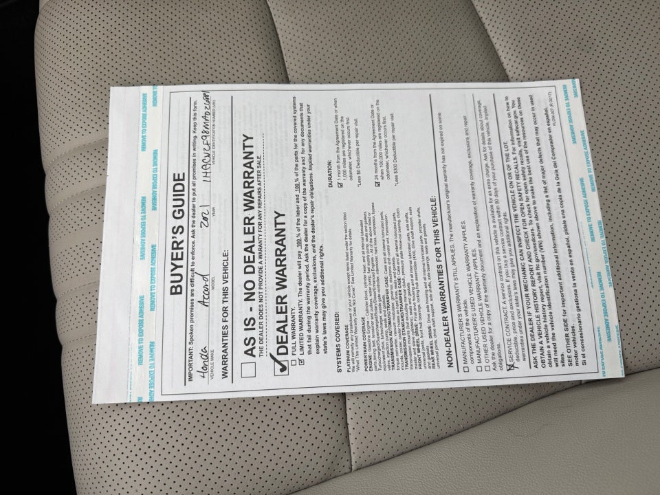 - Vehicle Name: Honda Accord Sedan