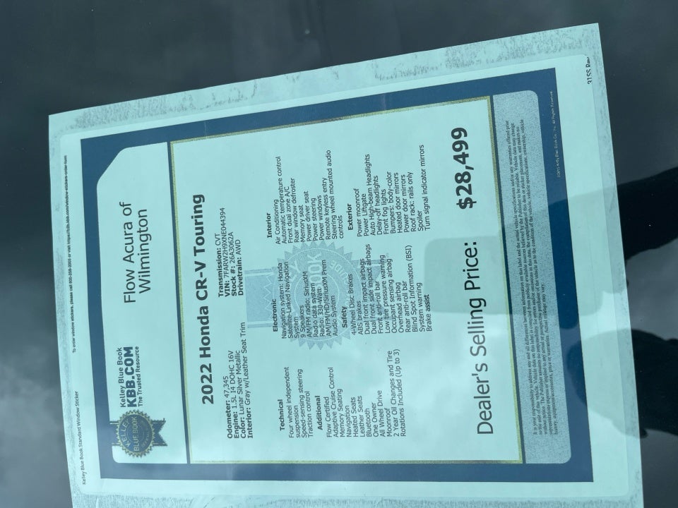 Flow Acura of Wilmington is very proud to offer this beautiful 2022 Honda CR-V Lunar Silver Metallic Touring with the following features: