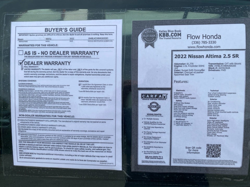 Why Buy From Flow: - Low no haggle prices made it Fun Easy and Transparent. - Quality Reconditioning Process made any used car nearly new reconditioning report and carFax report posted online for your review. - Warranty on every vehicle we sell. - 2 year maintenance (includes oil change and tire rotation) at no charge to you on Flow Certified vehicles - 3 day money back guarantee. - Great selection with our large network we will bring you any car that you like at no additional charge. We look forward to serving you at Flow Honda of Winston Salem. Exit 192 off I-40 in Winston Salem. Any questions about this vehicle please call 336-785-3380. Thank you.