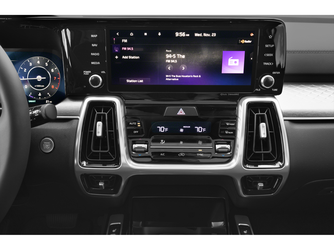 - Radio: AM/FM Audio System -inc: 10.25" touchscreen, navigation, telematics, modem, HD Radio, Bluetooth® w/audio remote control and voice recognition, wired Android Auto/Apple CarPlay, 6 speakers, USB and SiriusXM