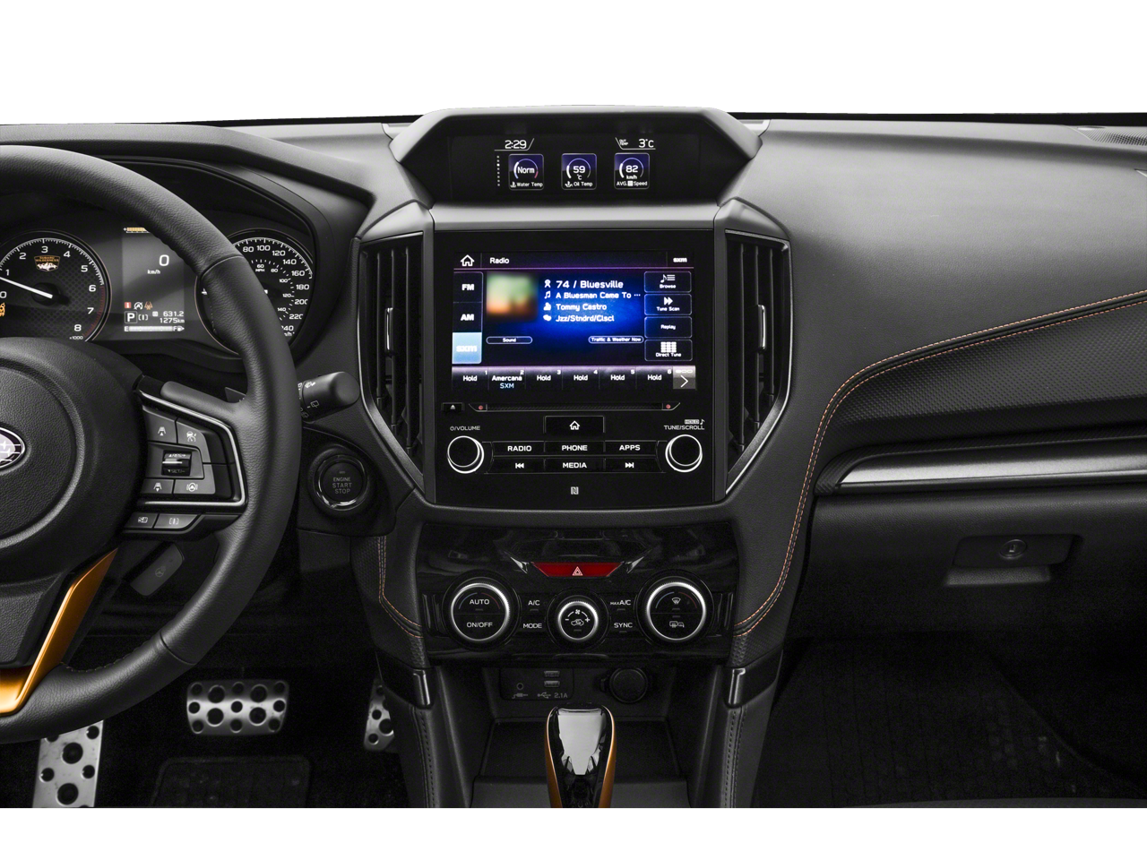 • Radio: Subaru Starlink 8.0" Multimedia Plus System -inc: AM/FM stereo HD Radio w/single-disc CD player, MP3/WMA/CRR/RW file capability, multi-touch gesture high resolution display screen, voice activated controls, Bluetooth® audio streaming, hands-free phone connectivity and hands-free SMS text messaging connectivity (refer to subaru.com for cell phone compatibility), Near Field Communication (NFC), iPod control capability, SiriusXM All Access radio and Travel Link (4 months free trial/subscription required after), smartphone integration for AHA, Android Auto, Apple CarPlay, Pandora and Starlink cloud applications (refer to subaru.com for app availability), USB and Over The Air (OTA) audio system update, steering wheel controls for audio and Bluetooth®, 6 speakers, 3.5mm auxiliary input jack and dual USB A input/charge ports
