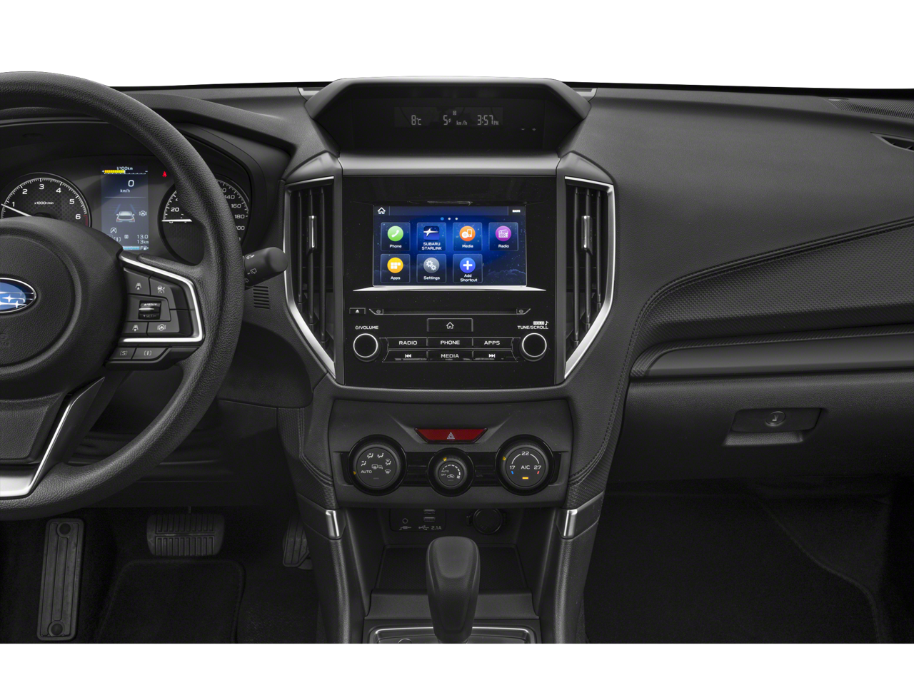 • Radio: Subaru STARLINK 6.5" Multimedia Plus System -inc: AM/FM stereo HD Radio, multi-touch gesture high resolution display screen, voice activated controls, Bluetooth® audio streaming, hands-free phone connectivity and hands-free SMS text messaging connectivity (refer to subaru.com for cell phone compatibility), iPod control capability, SiriusXM All Access radio and SiriusXM Travel Link (4 months free trial/subscription required after), smartphone integration for AHA, Android Auto, Apple CarPlay, Pandora and STARLINK cloud applications (refer to subaru.com for app availability), USB audio system update, steering wheel controls for audio and Bluetooth®, 6 speakers, 3.5mm auxiliary input jack and dual USB A input/charge ports