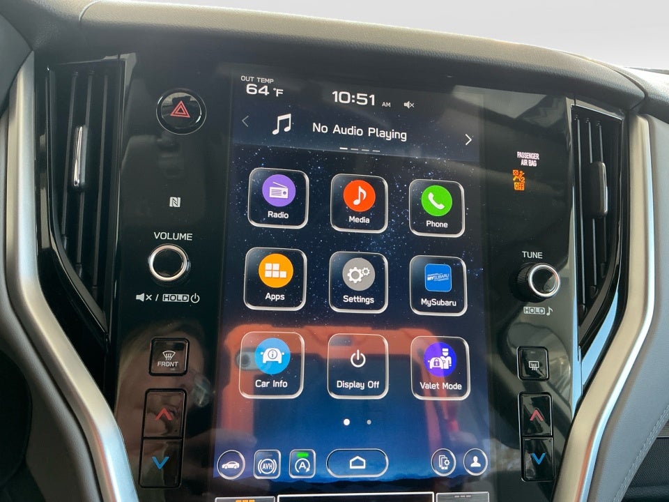- Radio: Subaru STARLINK 11.6" Multimedia Plus Sys -inc: AM/FM stereo, HD Radio, valet mode, multi-touch gesture high resolution display screen, voice activated controls, Bluetooth® audio streaming and hands-free phone connectivity w/SMS text messaging (refer to subaru.com for cell phone compatibility), Near Field Communication (NFC), iPod control capability, SiriusXM 360L Platinum trial (4 months free trial/subscription required after), SiriusXM Travel Link (4 months free trial/subscription required after), smartphone integration: Android Auto and Apple CarPlay w/full screen view and wireless connection and STARLINK cloud applications (refer to subaru.com for app availability), USB and Over The Air (OTA) audio system update, audio system and Bluetooth® steering wheel control switches, 6 speakers, illuminated 3.5mm auxiliary input jack and illuminated USB-A and USB-C input/charge ports SiriusXM Platinum trial available after launch, possibly October 2023.