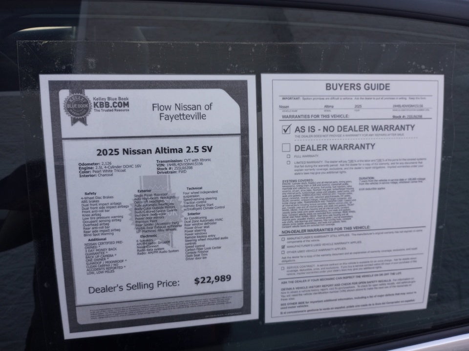 2025 Nissan Altima 2.5 SV Pearl White Tricoat 2.5 SV FWD 2.5L 4-Cylinder DOHC 16V