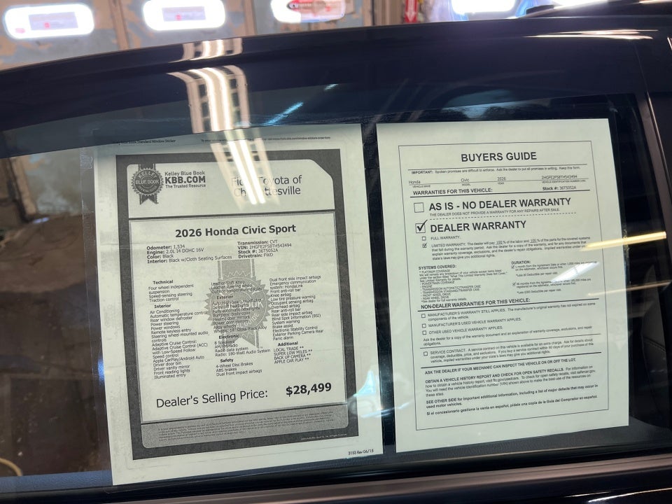 FLOW CERTIFIED! 4YR/100 000 MILE WARRANTY 3 day money back guarantee and a free maintenance package on this 2026 Honda Civic Black Sport! ** All of our Pre-Owned vehicles go through a QRP(Quality Renewal Process). Our customers tell us that we have the most professional trustworthy & courteous staff they've ever experienced at a car dealership. Please come check out Flow Toyota of Charlottesville's Easy Transparent Fun No Haggle No Pressure shopping experience. Don't hesitate to contact us at www.flowtoyotacharlottesville.com or simply by calling 434-977-3380 to set up your VIP test drive. Thank you for allowing us to serve your automotive needs over the past 50+ years.
